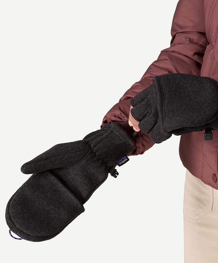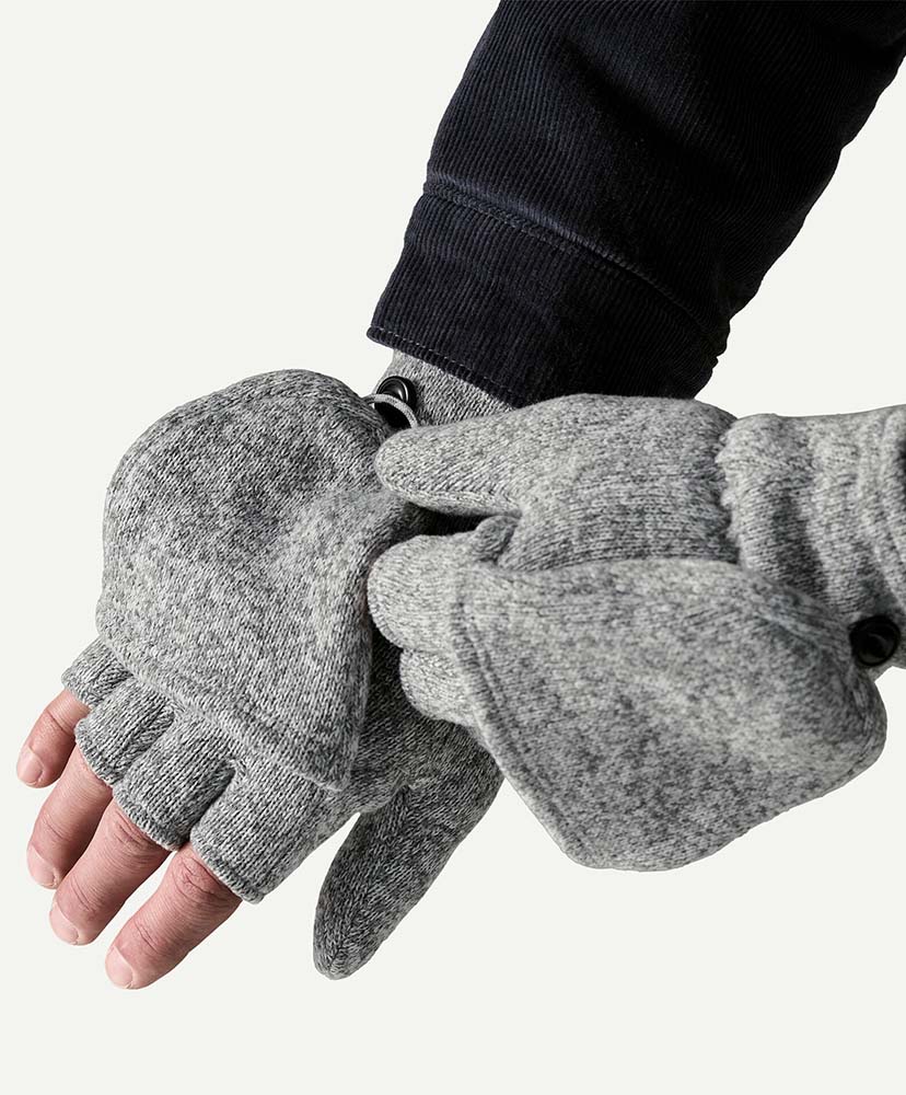 多目的なスポーツやカジュアルなアクティビティで、フィンガーレス・グローブとしても使える温かく快適なミトン。セーターニットのリサイクル・ポリエステル・フリース素材を使用