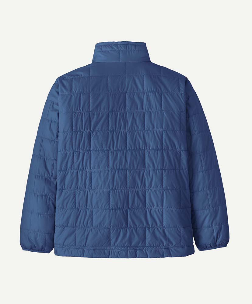 保温性・防風性・耐水性を備えたキッズ用ナノ・パフ・ブリック・ジャケット。軽量で暖かく、雪遊びやアウトドアにぴったりの一枚です。