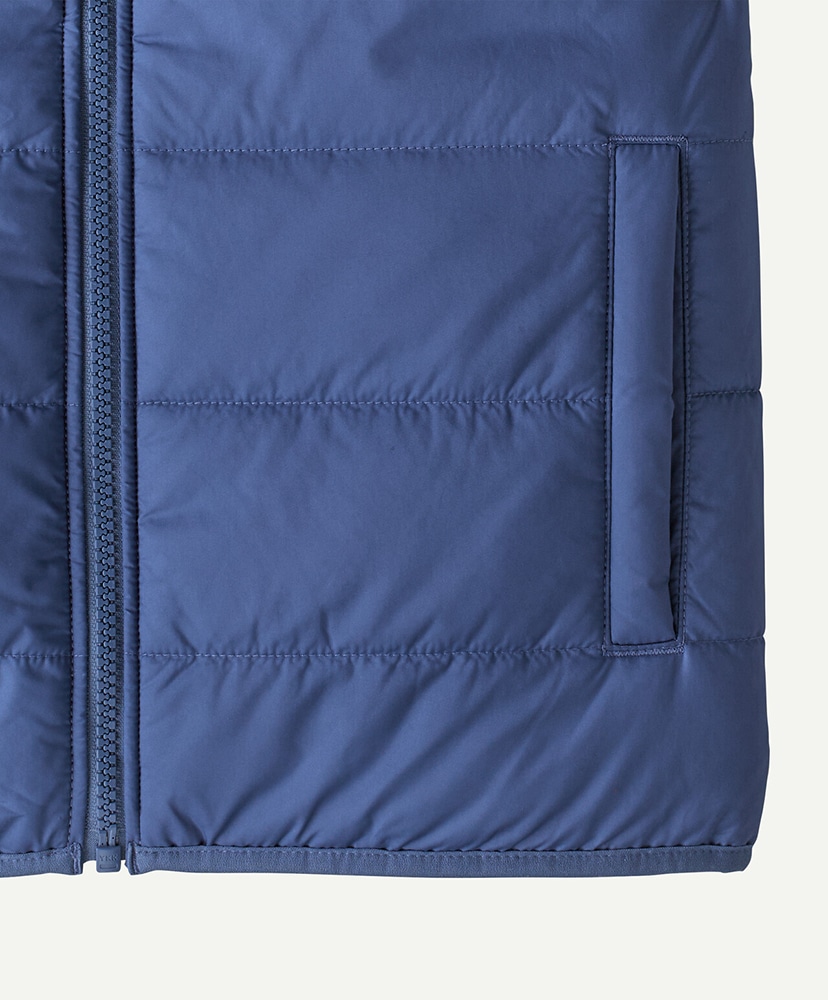 表面は耐水性のリサイクル・ポリエステル100%タフタで、60gのリサイクル・ポリエステル・インサレーションを内蔵。裏面にはソフトで快適な6mm厚リサイクル・ポリエステル・パイルを使用し、両面とも長時間の保温性と快適な着心地を提供します。