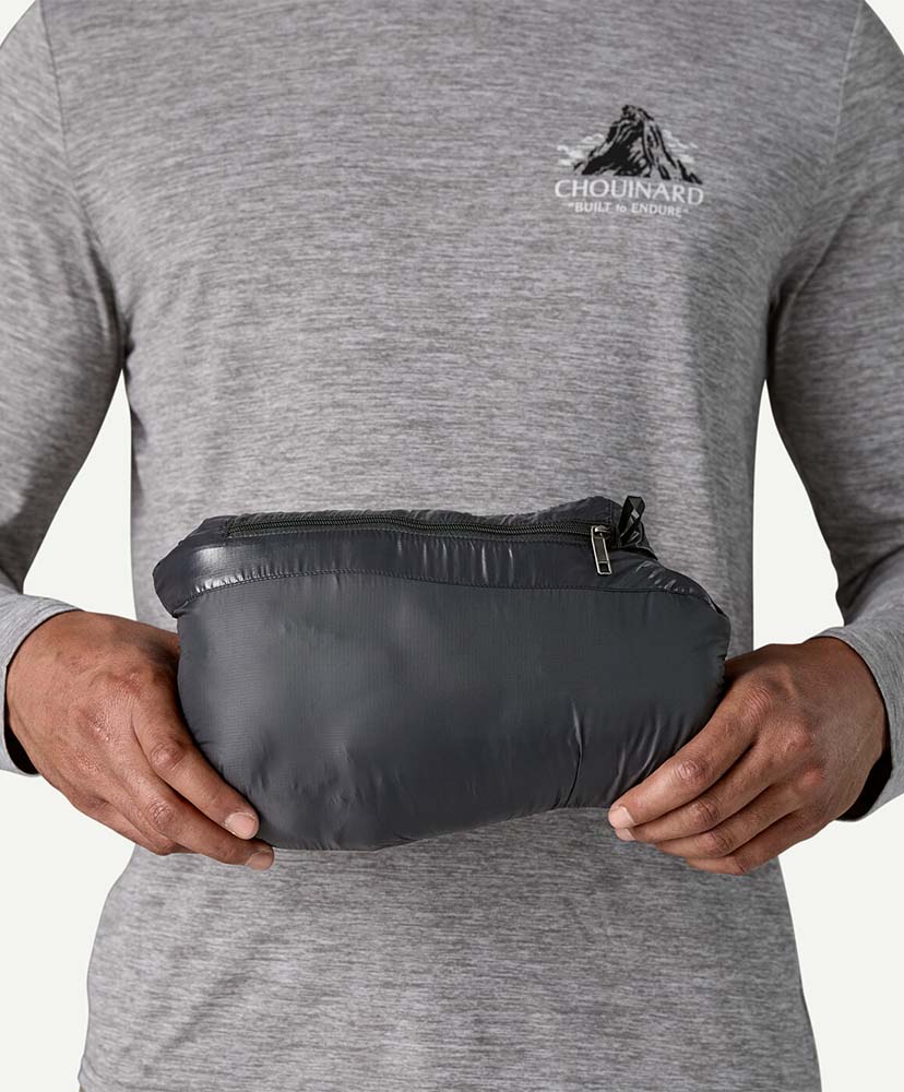 軽量で防風性を備えており、単体での着用はもちろん、ミッドレイヤーとしても幅広く活躍します。内側のジッパー式チェストポケットには本体をコンパクトに収納可能(カラビナ用ループ付き)で、持ち運びにも便利です。裾はコードロックで調節でき、温かさを逃しません。