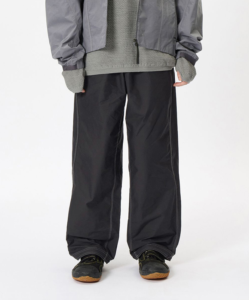 特徴的なバルーンシルエットを描くリラックスフィットのイージーパンツ。コーティングを施した、タフなコットンポリエステル高密度リップストップ素材を使用。ハリ感のある素材によって、特徴的なシルエットを描きます。