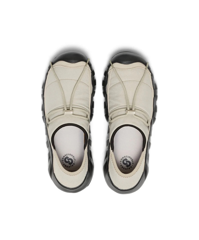 ヒールカウンターを倒してスライドスニーカーとしても使用可能な2WAYデザイン。