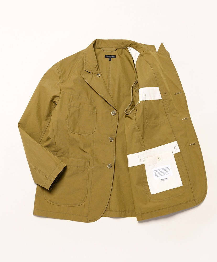ピークドラペルと4パッチポケットのデザインに、ワークウェアの無骨なディテールが加わった〈ENGINEERED GARMENTS〉の定番ジャケット。