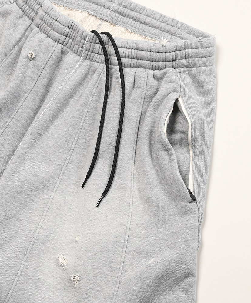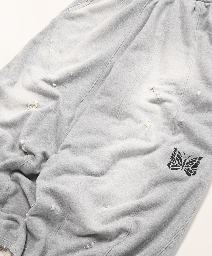 ヴィンテージスウェットのようなリアルなダメージや色褪せの加工が施されたスウェットパンツを〈NEEDLES〉人気のH.D.パンツ型でリリース。
