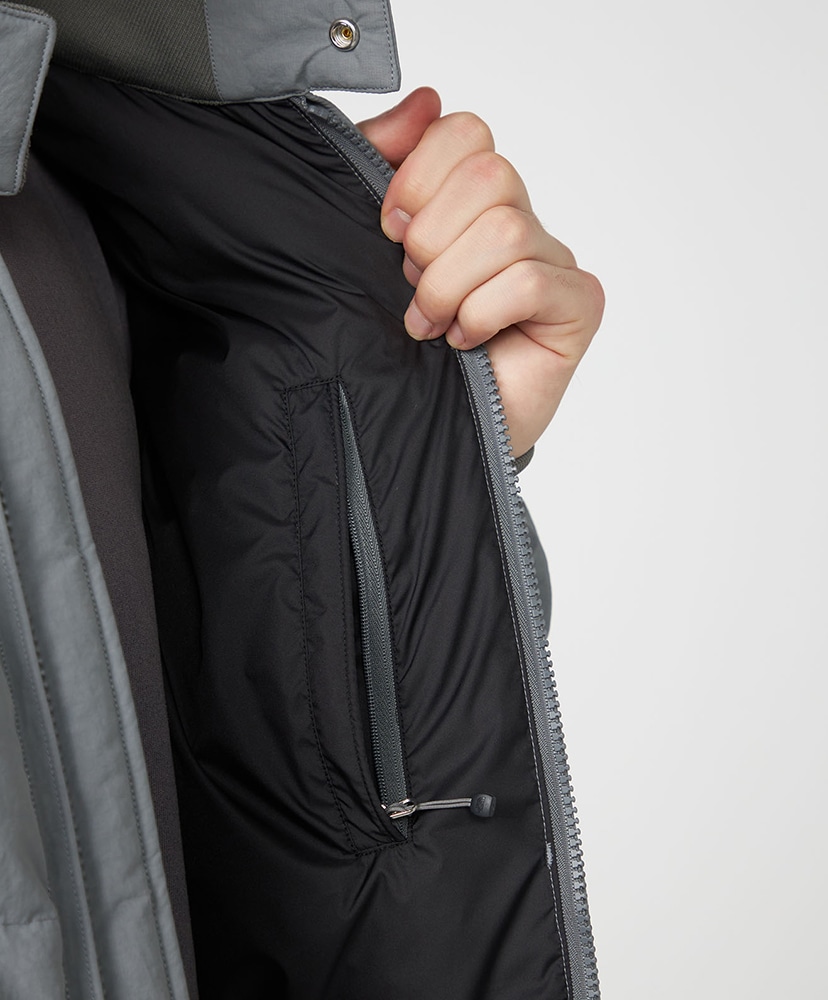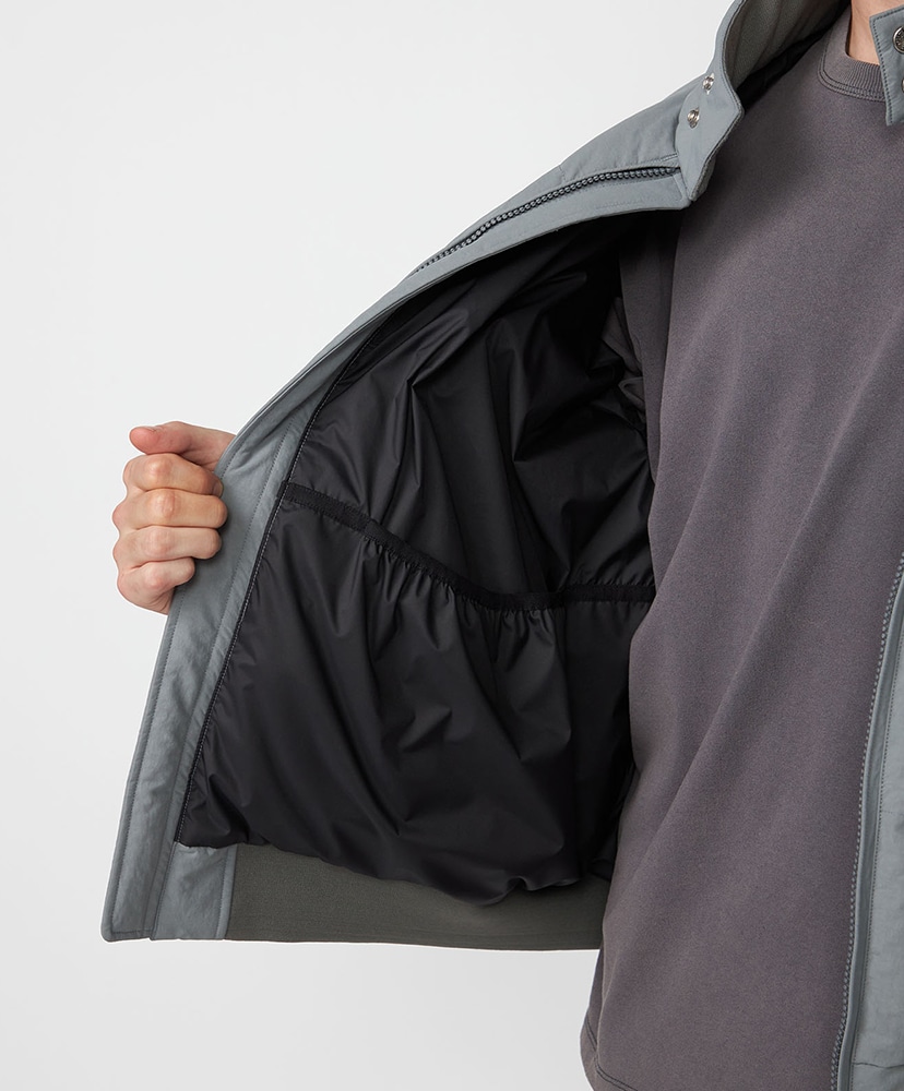 ・リサイクルナイロンとオーガニックコットンで織りあげたタッサークロスを使用したフィールドダウンジャケット