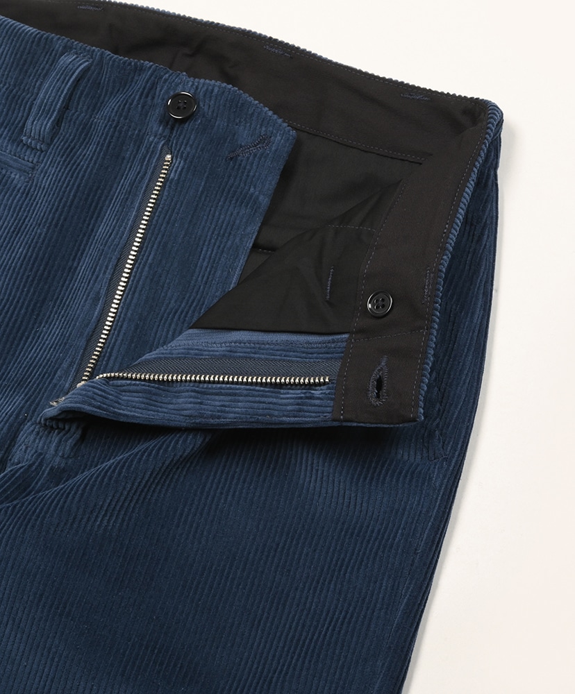 生地の段階で揉み込むような染めを施し、膨らみと味のあるナチュラルな風合いに仕上げた贅沢なコーデュロイ。