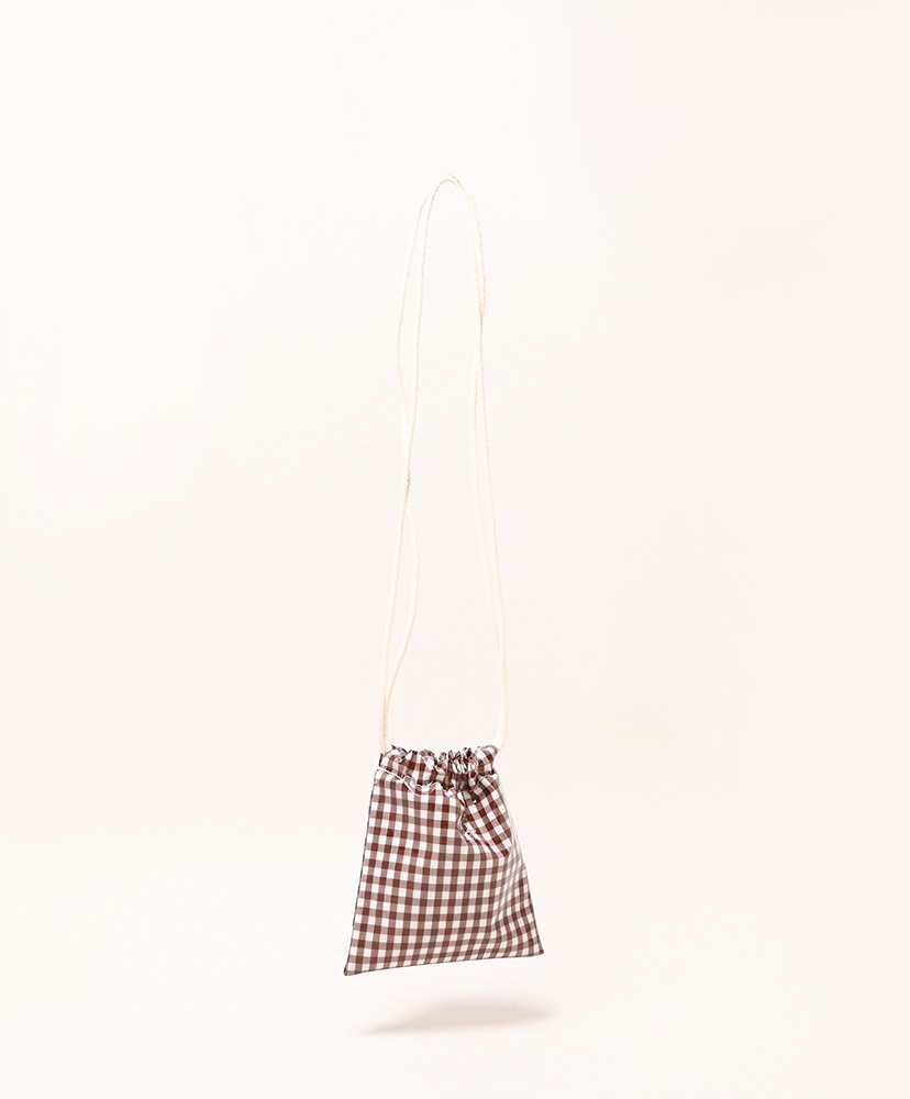 定番の巾着型をそのまま小さく&ショルダー仕様にしたこのバッグは、まさに“アクセサリーみたいに持てる”感覚。