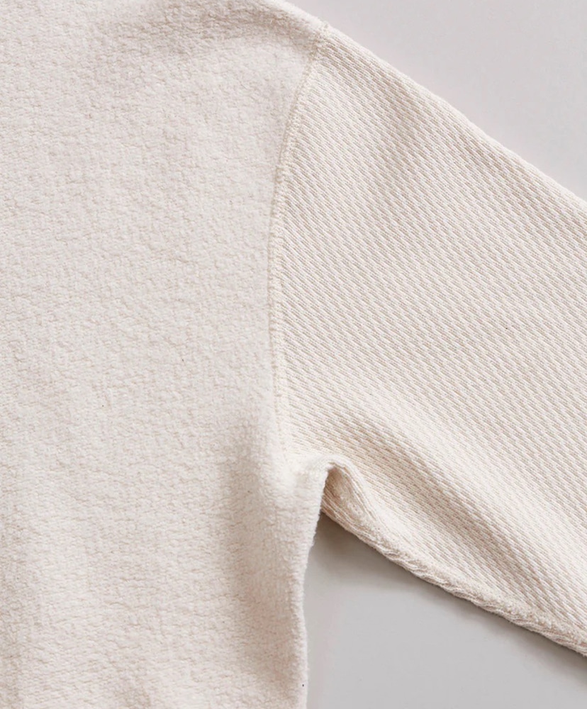 英国陸軍のトレーニングウェアをベースにデザインした、アシンメトリーなスウェットシャツ。