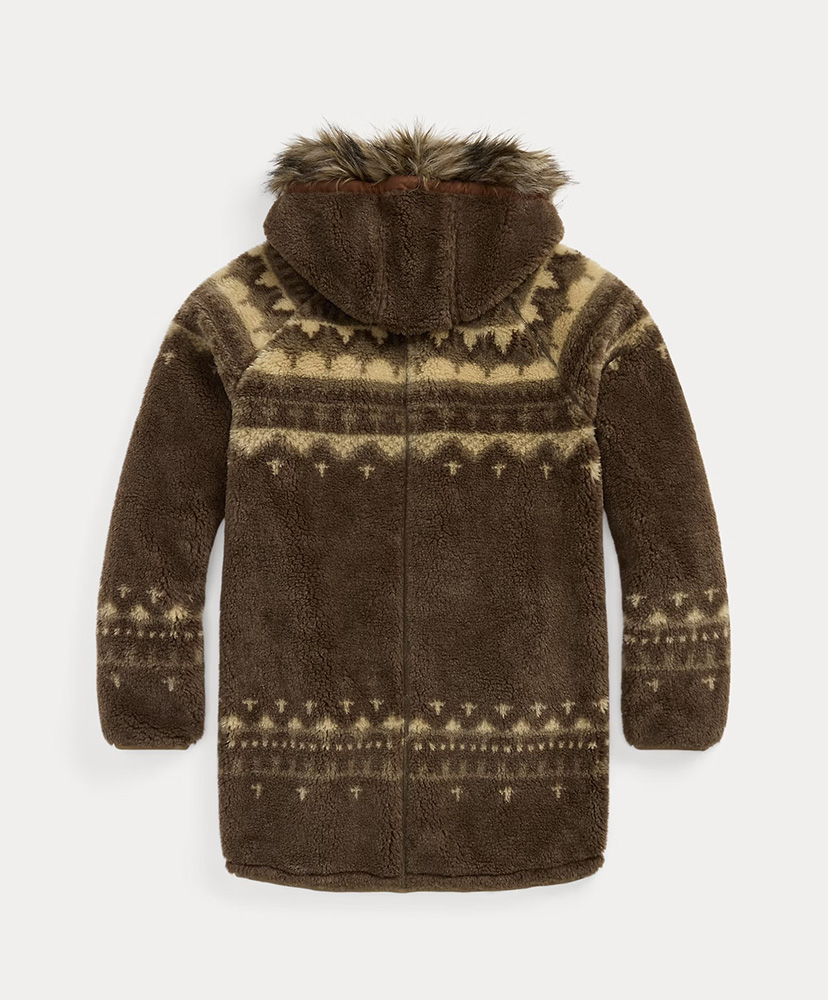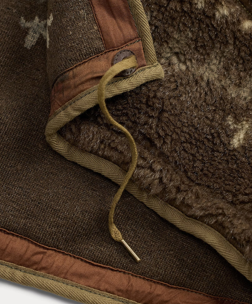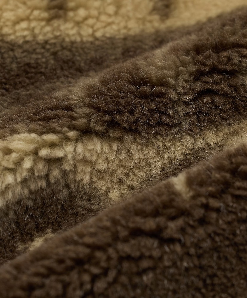トーナルな幾何学パターンをあしらったハイパイルフリースを使用。