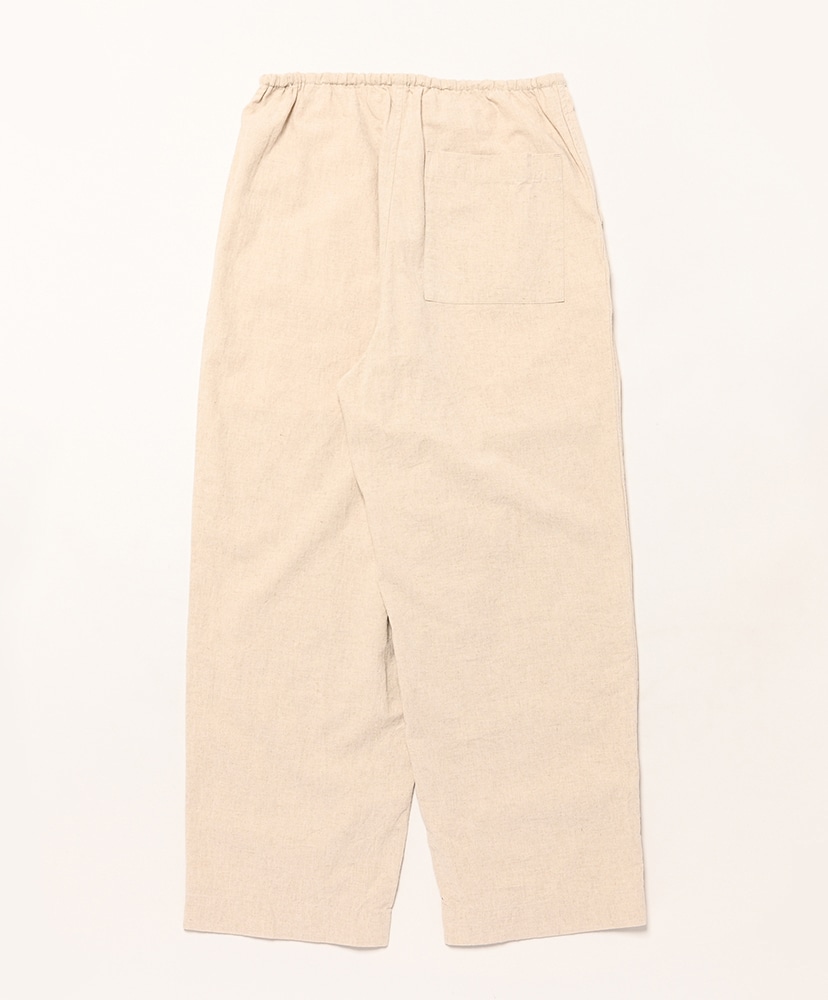 リネンと綿を高密度に織り洗い込み、ハリコシ感がある風合と所々にネップやシワがあるナチュラルな表面感が特徴です。