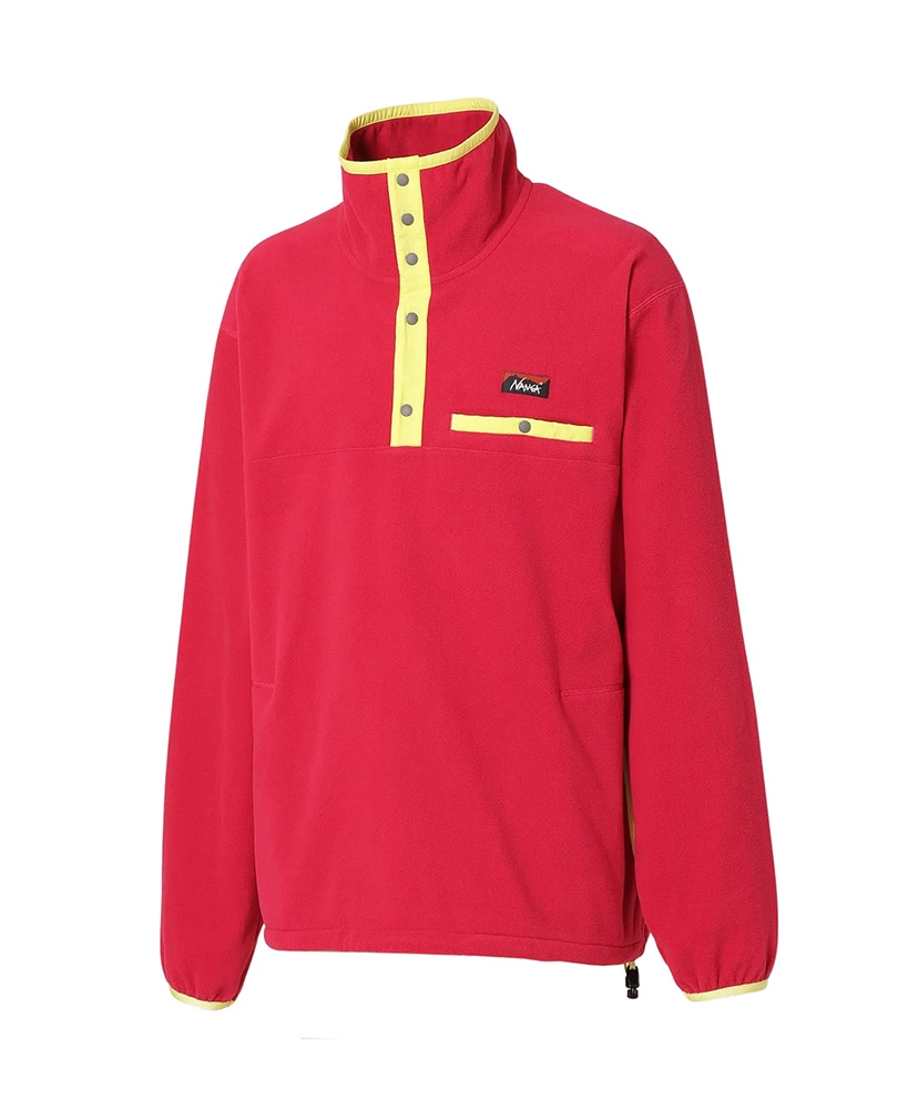スタンドカラーネックで首元をしっかり保温。腰部分にはカンガルーポケットのように使えるシームポケットを配置し、袖口はストレッチテープで外気の侵入を防止。裾はドローコードでシルエットを調整できるので、自分好みにフィット感を変えられます。前立てはスナップボタン仕様で、着脱もスムーズ。さらに、表地と付属パーツのカラーリングで遊び心を加え、レトロアウトドアを思わせるデザインに仕上げています。