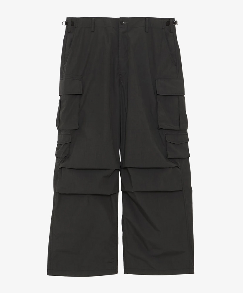 オーバーパンツの太さと軍用ポケットのディテールを組み合わせ、従来のカーゴパンツの枠を超えた「新しいアーミーパンツ」として再構築。無骨さと機能美を両立させ、都会的なスタイリングから本格アウトドアまで幅広く対応するデザインです。