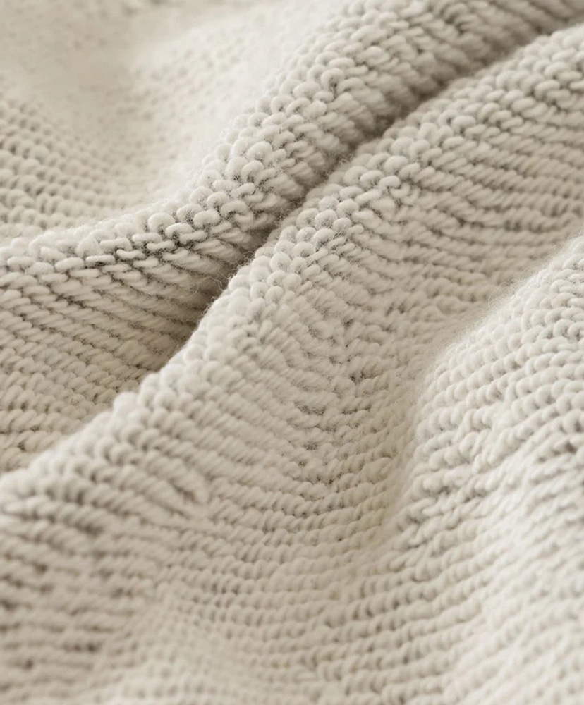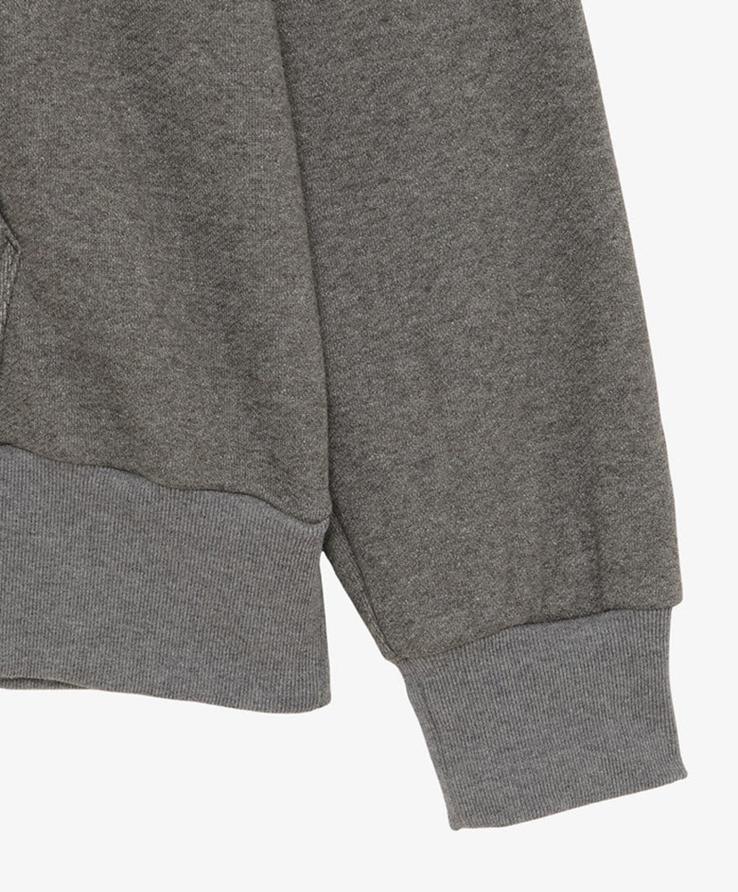 和歌山にわずかしか現存しない旧式の「アズマ編み機」(1970年代頃の初期型)を使用し、ヘビーウエイトの裏毛素材で仕立てたスウェットフーディー。