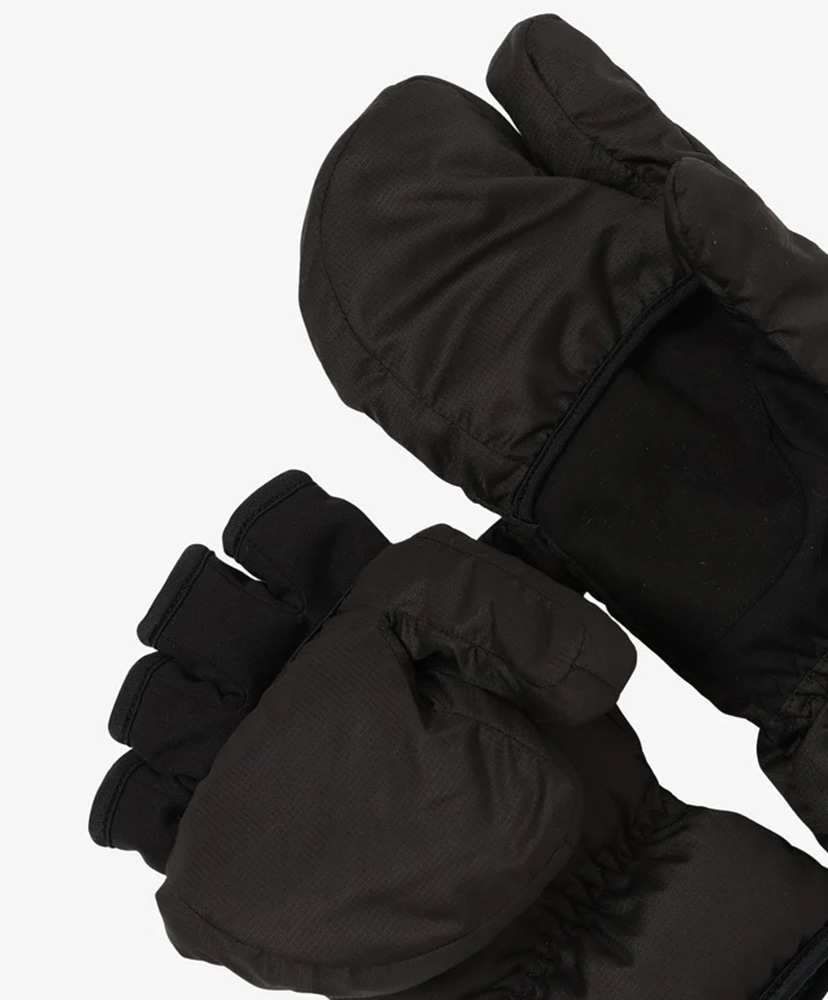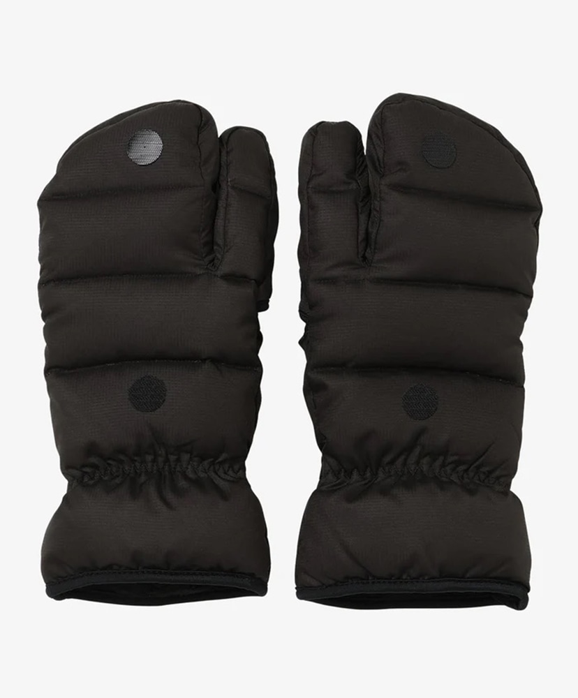 親指・人差し指・中指を露出できるロブスター型のダウングローブ。