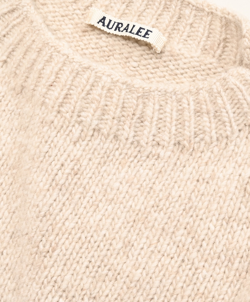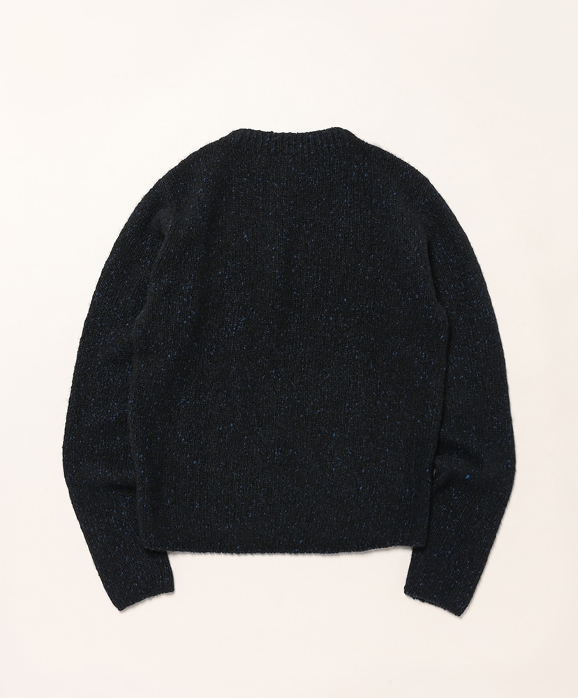 上質なカシミヤを使用したロービングコード糸にネップを加え、丁寧に編み立てたニットです。