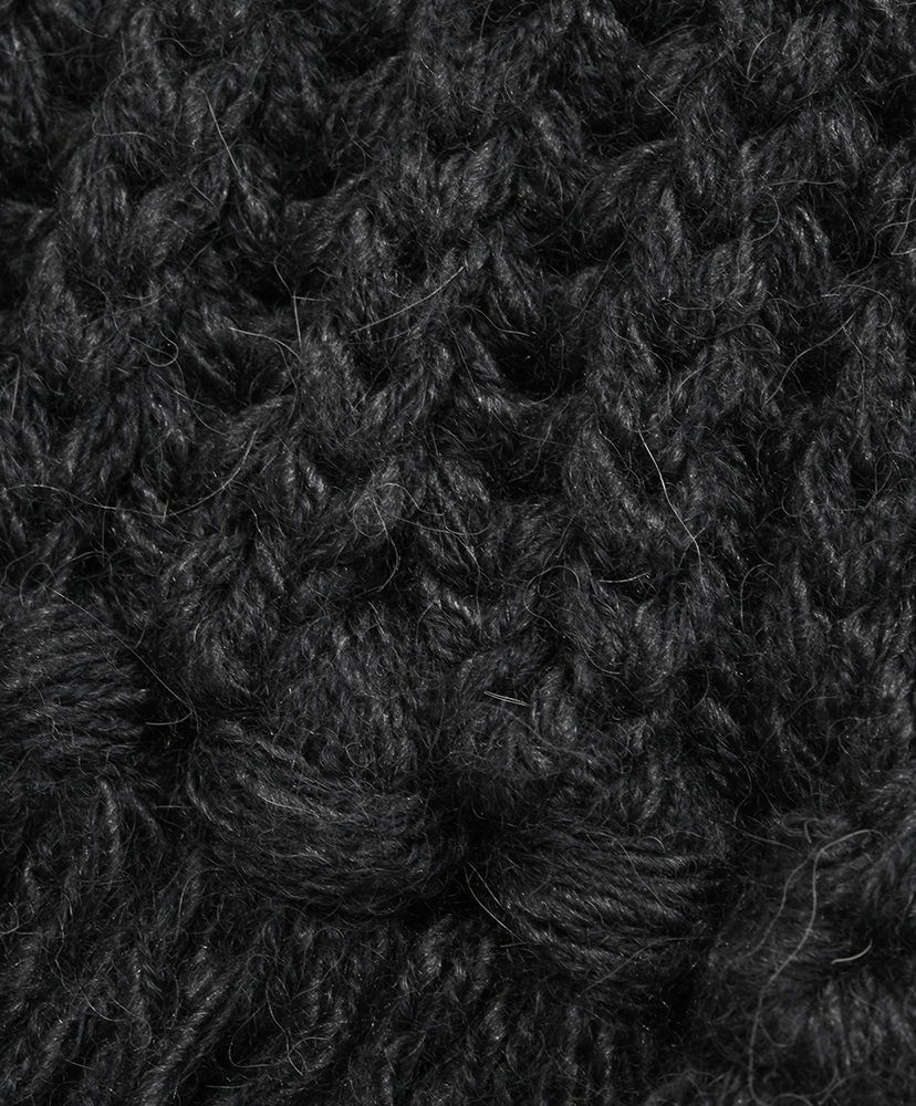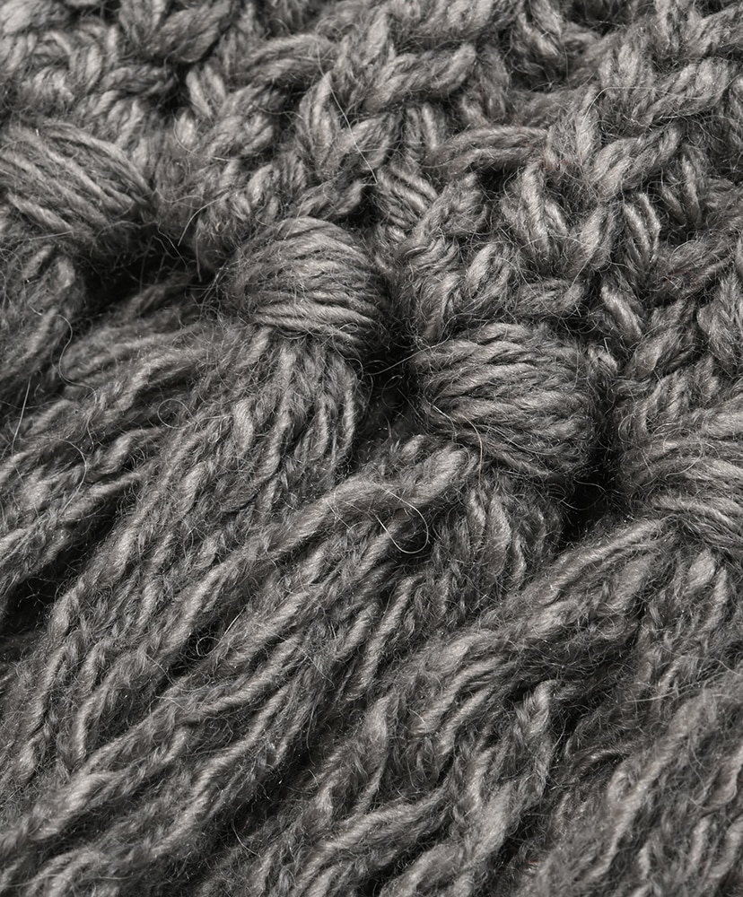 膨らみの強い太番手の紡績したメリノウールに、柔らかく優しい肌触りのベビーアルパカと光沢感のあるシルクをブレンドした糸を使用。