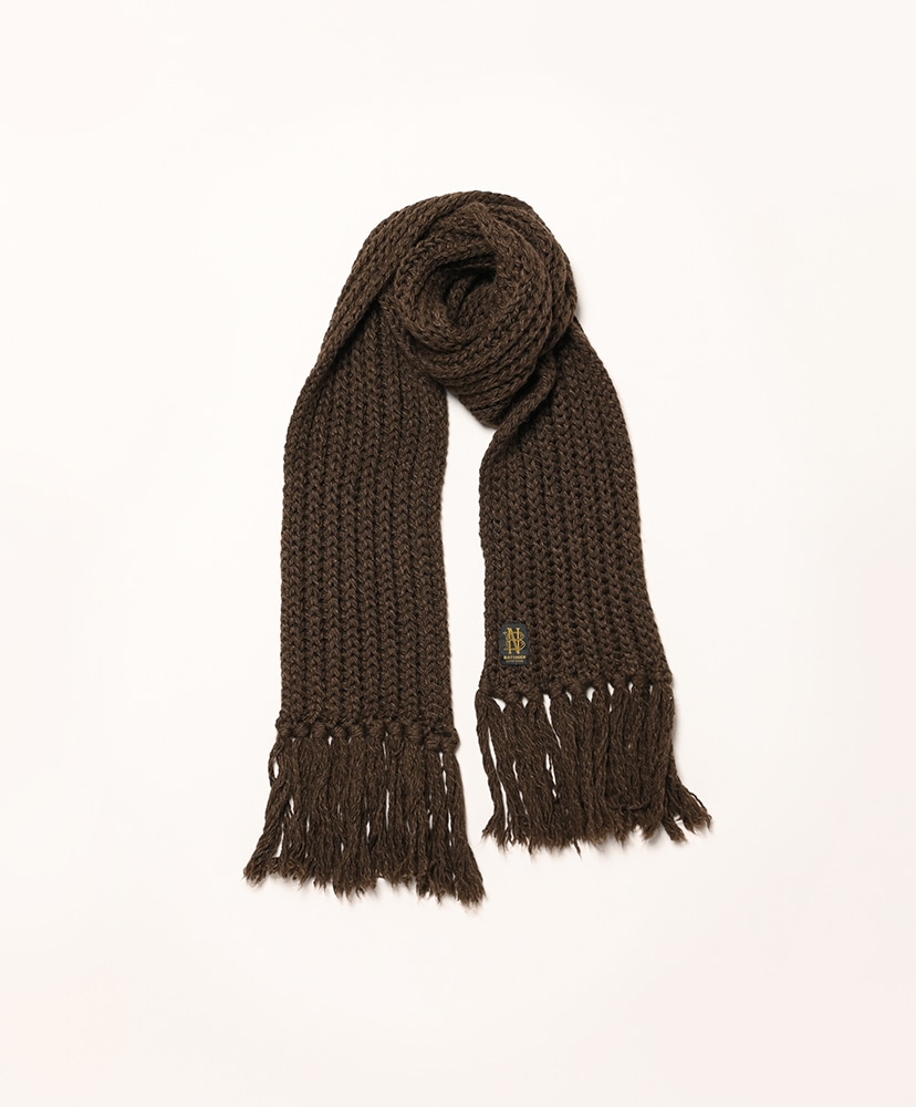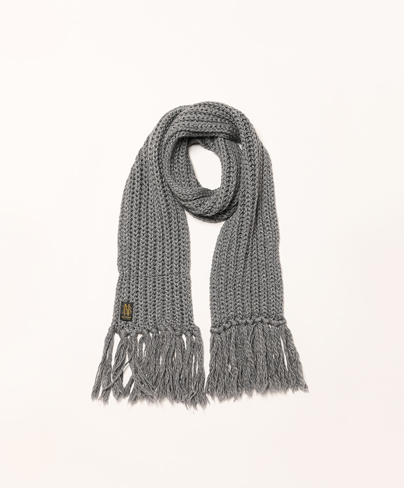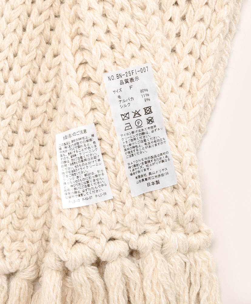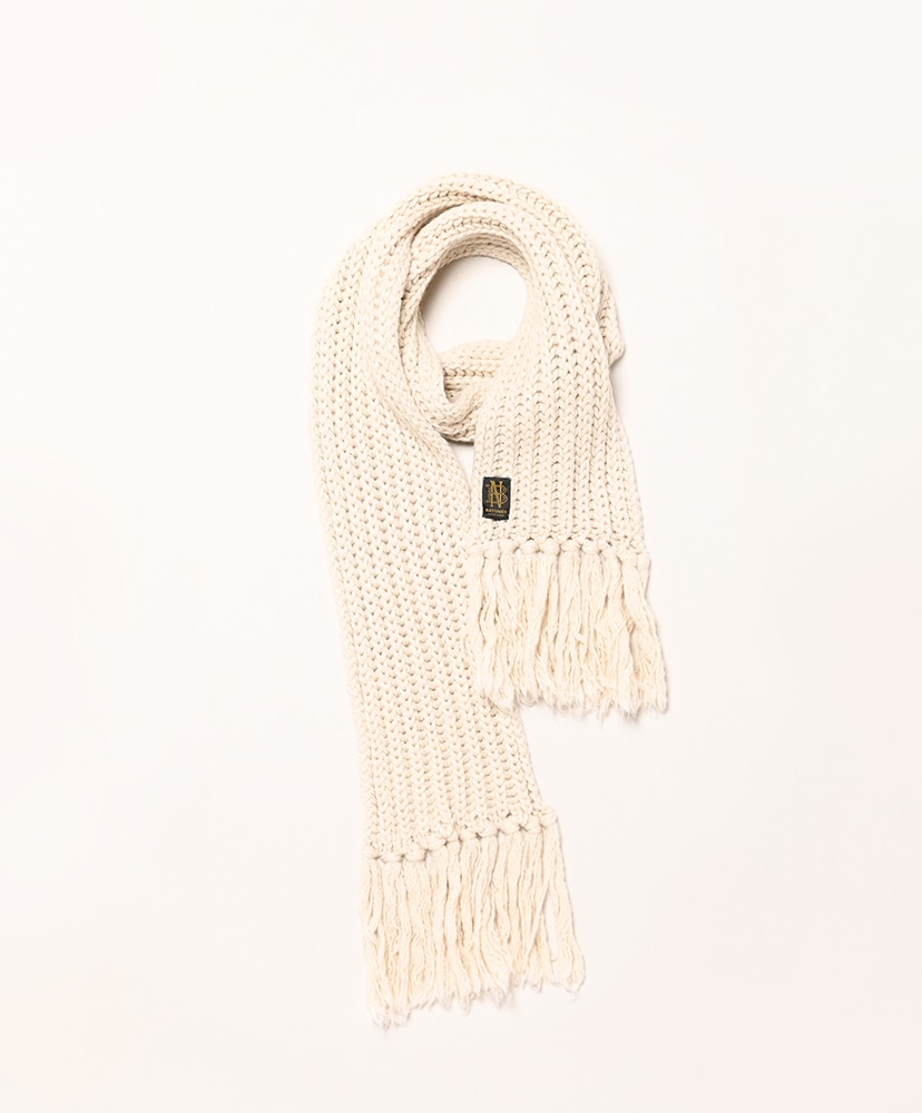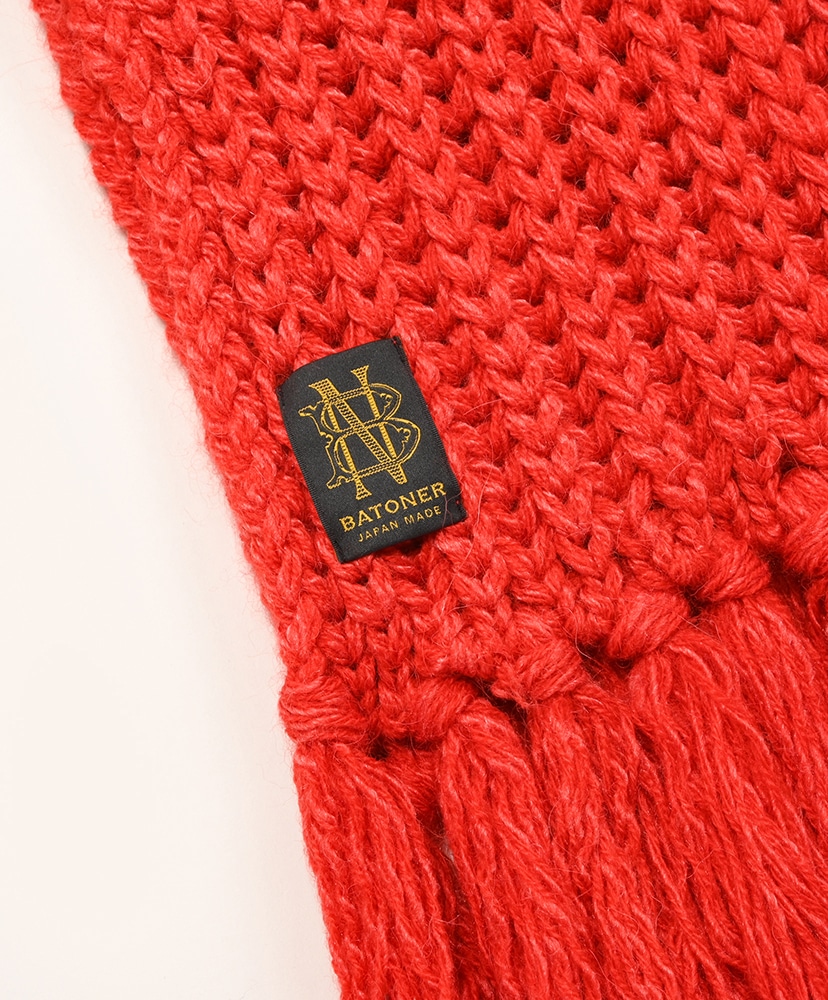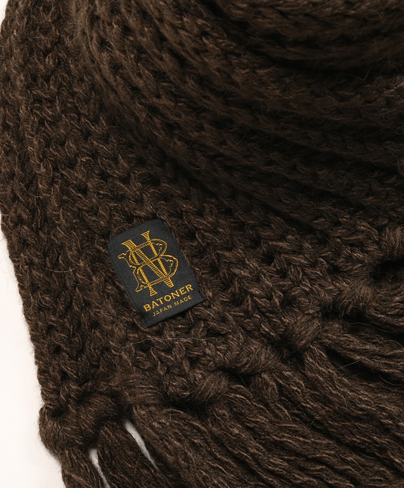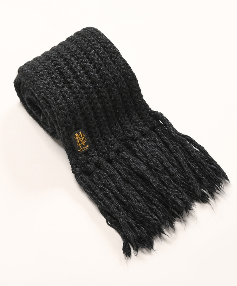 ローゲージでふっくらと編立てたBATONER定番のフリンジマフラー。