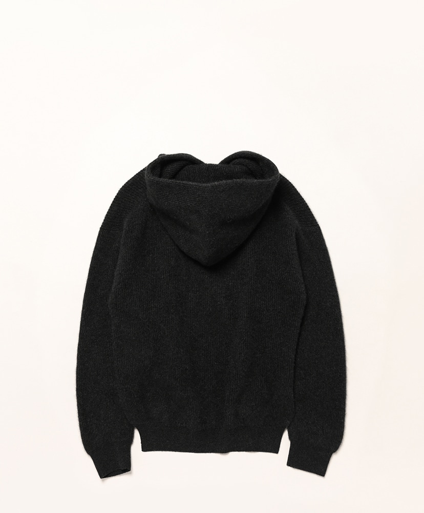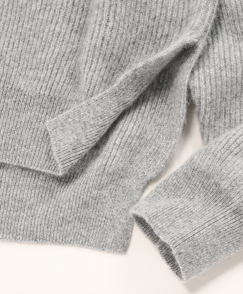 ほんのり青みがかった淡いグレーのブルーフォックスと、カシミヤの主要産地の一つとして知られるアルランシャン産の、ふくらみ豊かなカシミヤを使用。