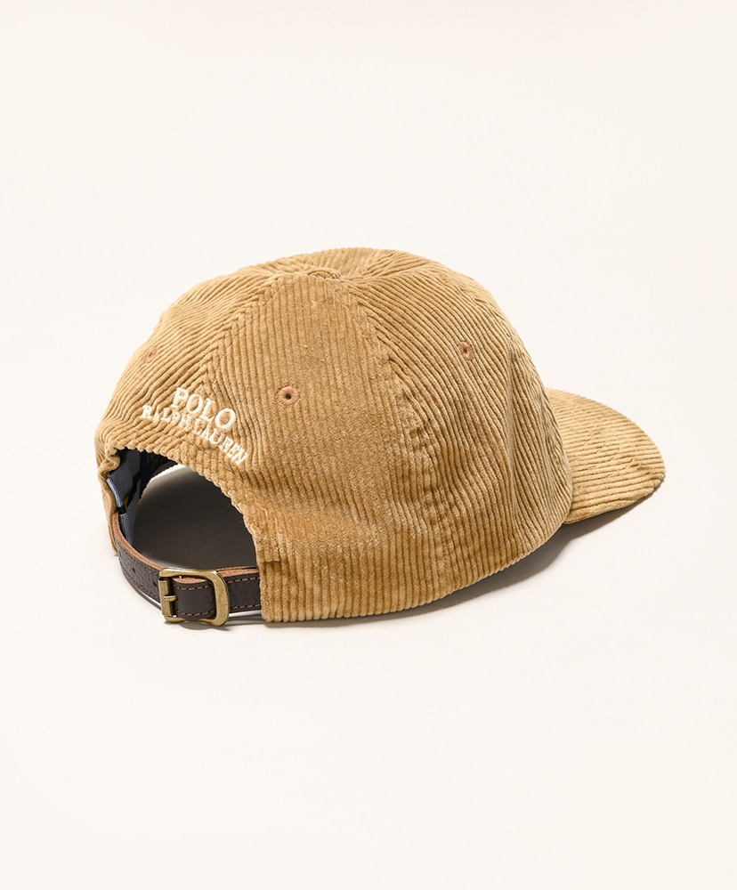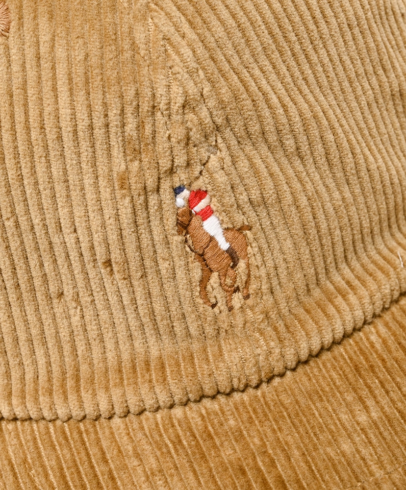 Ralph Laurenのシグネチャーであるマルチカラーのポニー刺繍がアクセントを添えるコーデュロイのボールキャップ。