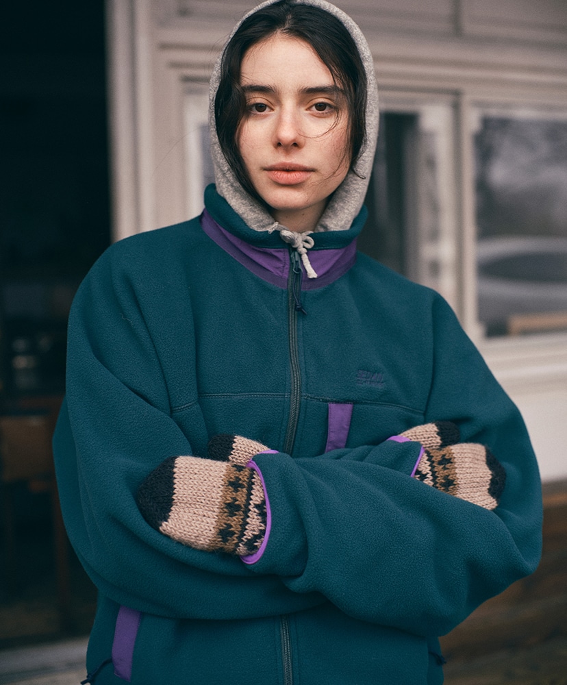あったかそうな太番手のウールで、裏地にはフリースが付きます。