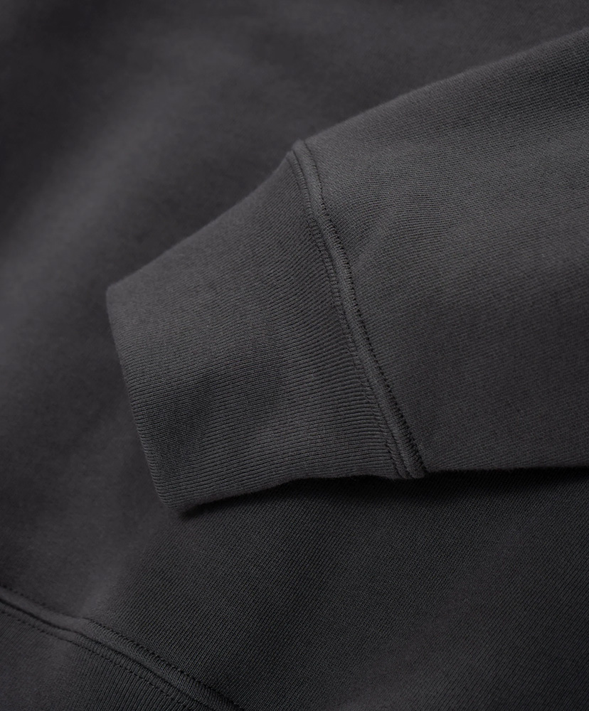 特製の13オンス起毛フリースを使用し、中厚手の生地は重ね着にも単体でも活躍します。