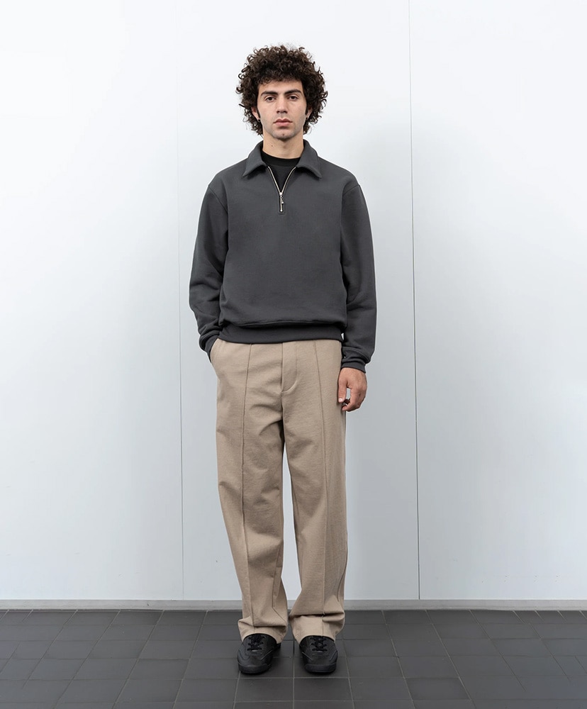 THE QUARTER ZIP SWEATSHIRTは ボックスシルエットでゆったりとしたフィットのクォータージップスウェットシャツです。
