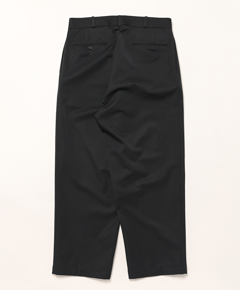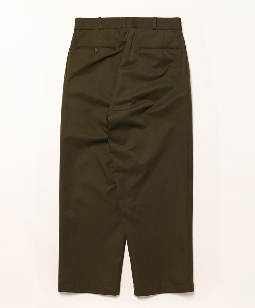ストレートシルエットだが、少しヒップとわたりにゆとりを持たせ、裾にかけて緩やかにテーパードさせたワイドシルエット