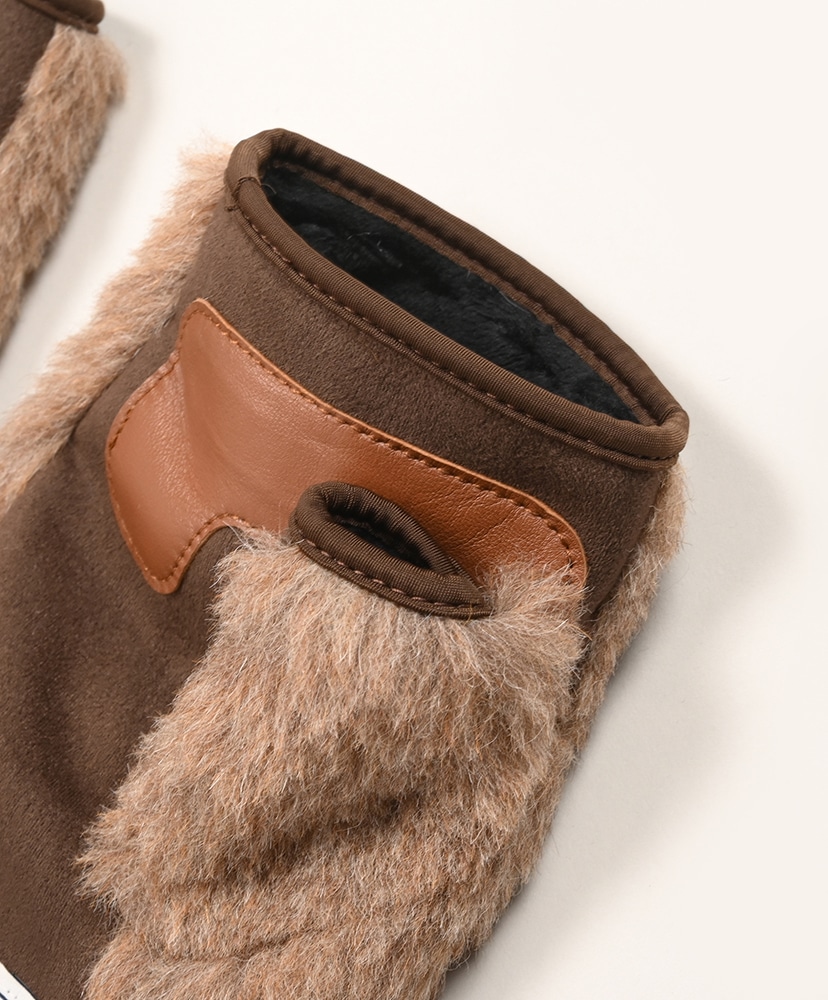 ウールボアとフェイクスウェードのコンビネーションフィンガーレスグローブです。