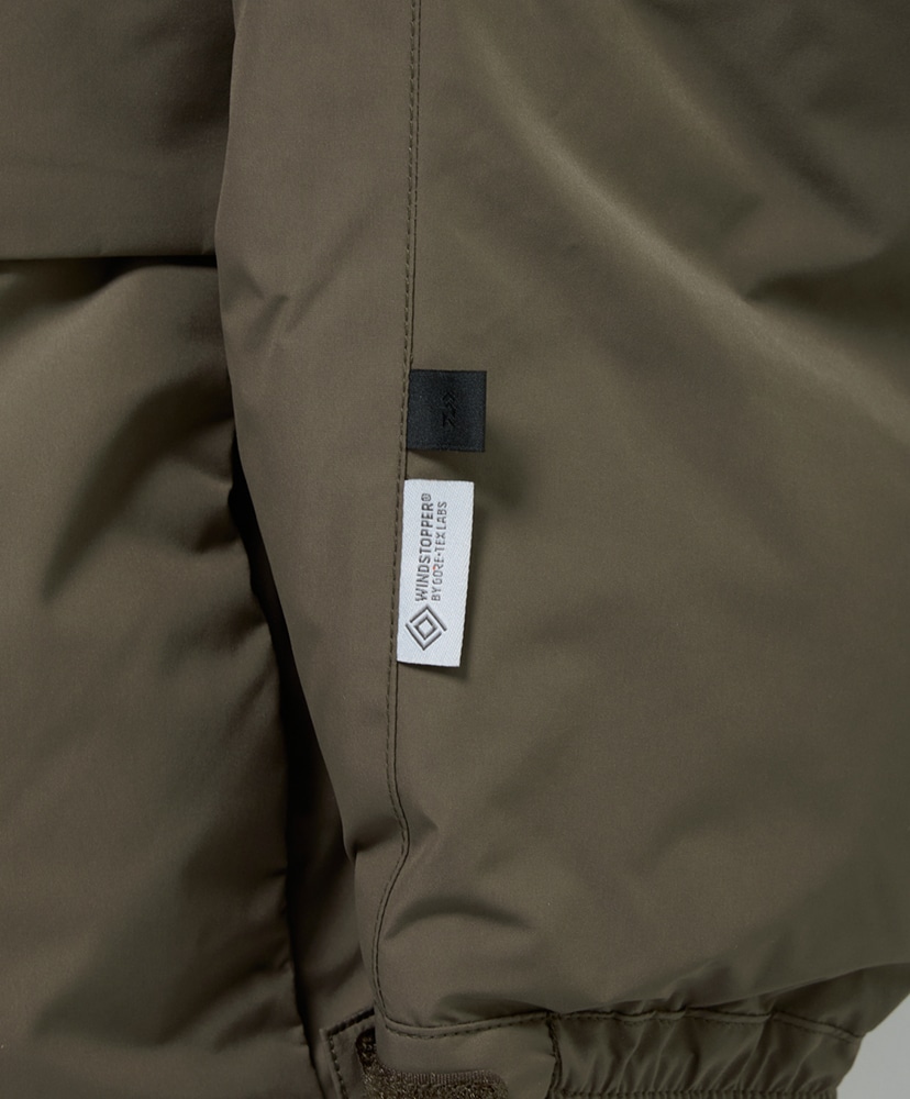 両素材ともにマットな質感が特徴的な軽量感あるタフタ素材。撥水加工に加え、WINDSTOPPER® products by GORE-TEX LABS採用による優れた防風性と高い透湿性を兼備 。