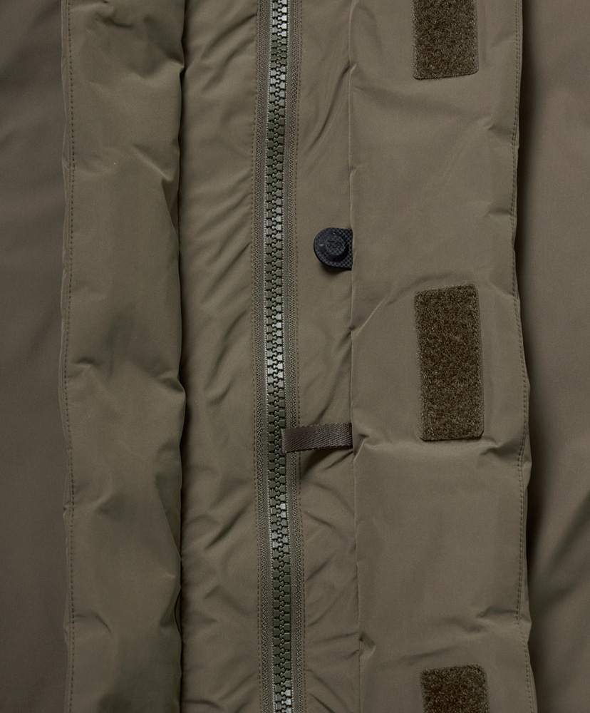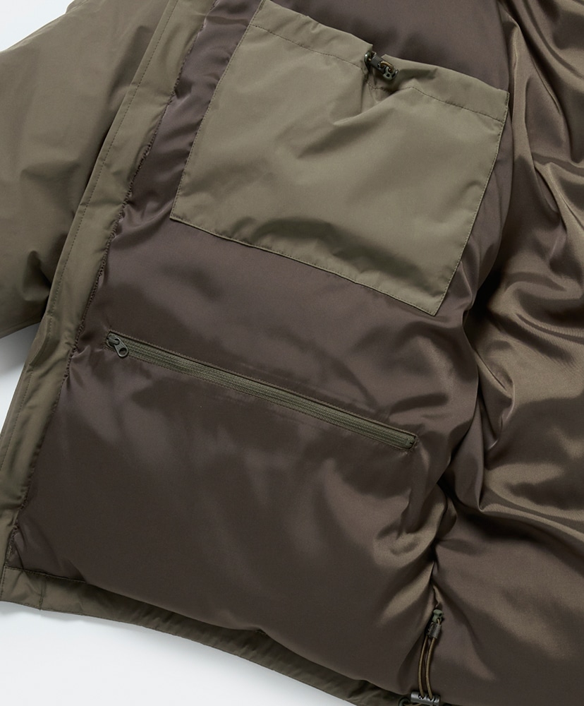 山岳探検家が着用するシンプルなダウンジャケットをアレンジ。