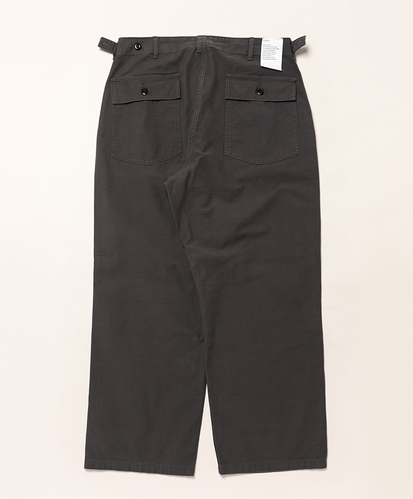 1950年代アメリカ軍のOG107 Utility Pantsをオマージュしたデザイン。ウエストにはサイドアジャスターを配し、調整可能な仕様。ベイカーらしい大きめのフロントポケットとバックポケットを備え、機能的なディテールが際立ちます。ストーンウォッシュ加工により、程よく使い込まれたヴィンテージライクな風合いに仕上げています。
