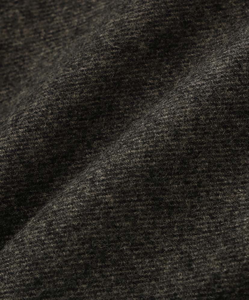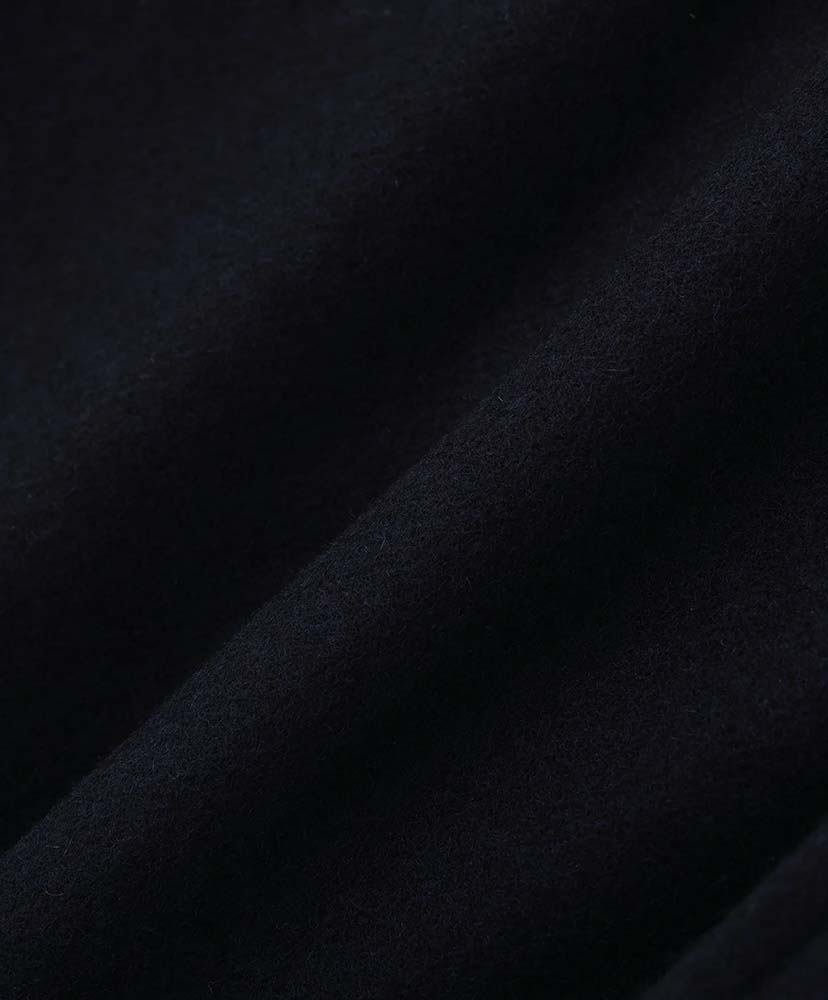 質感の異なる5種のウールをブレンドした糸をしっかりとした規格で織り上げメルトン生地は、高密度ながらも柔らかさがあり、タッチの優しい仕上がりとなっています。