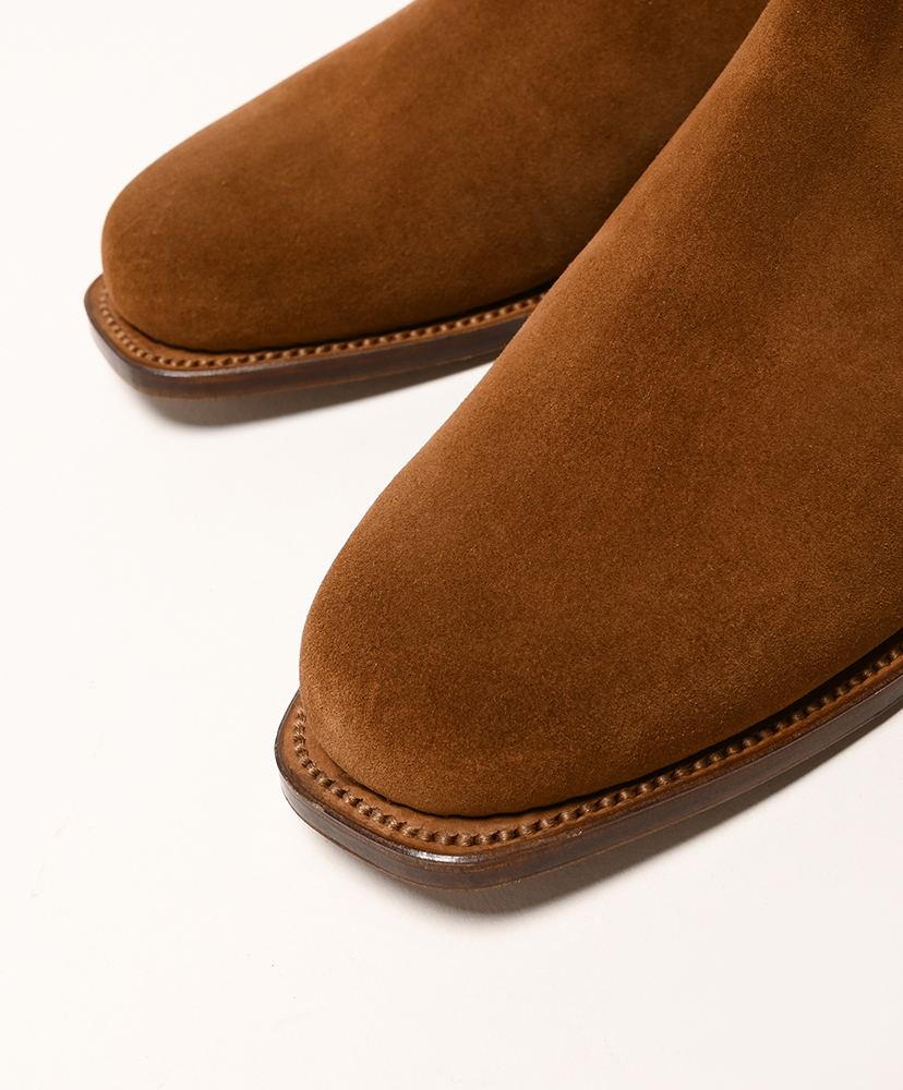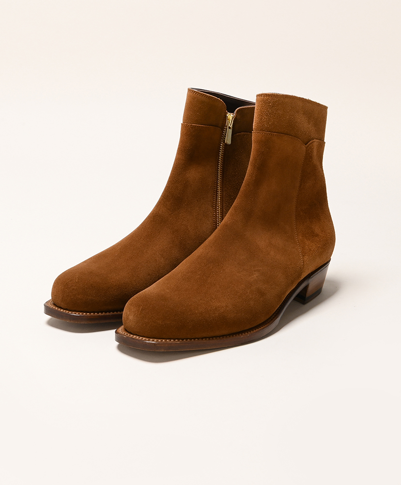 セミスクエアトゥのエッジが際立つスッキリしたシルエットのサイドジップブーツです。