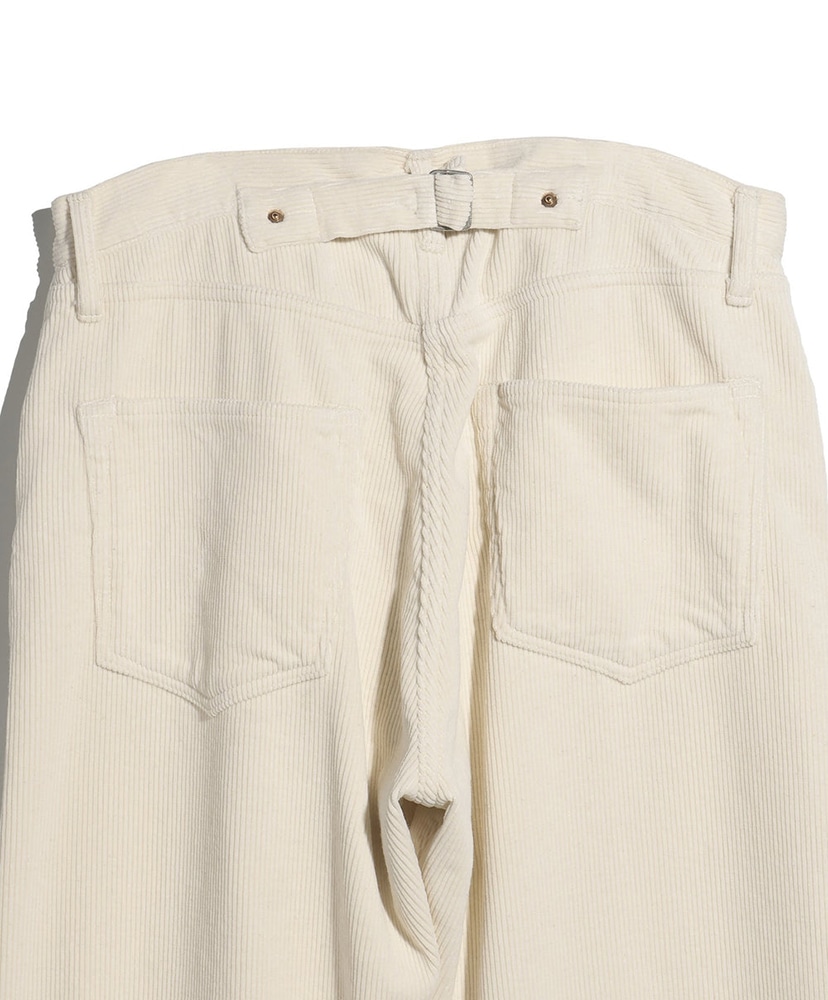 〈FOUNDOUR〉では前回もそのパンツをリファレンスに、シンチバックや股下のリベットにもこだわって、普遍的なデニム地でアイテムを作成しましたが、今回はそのコーデュロイバージョン。