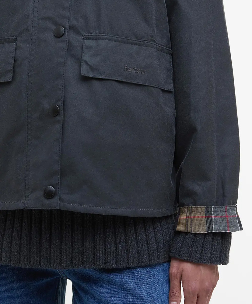 裏地のタータンチェックの色がメンズモデルとは異なり、また袖裏にも同色のタータンチェックが施された新しいモデルです。