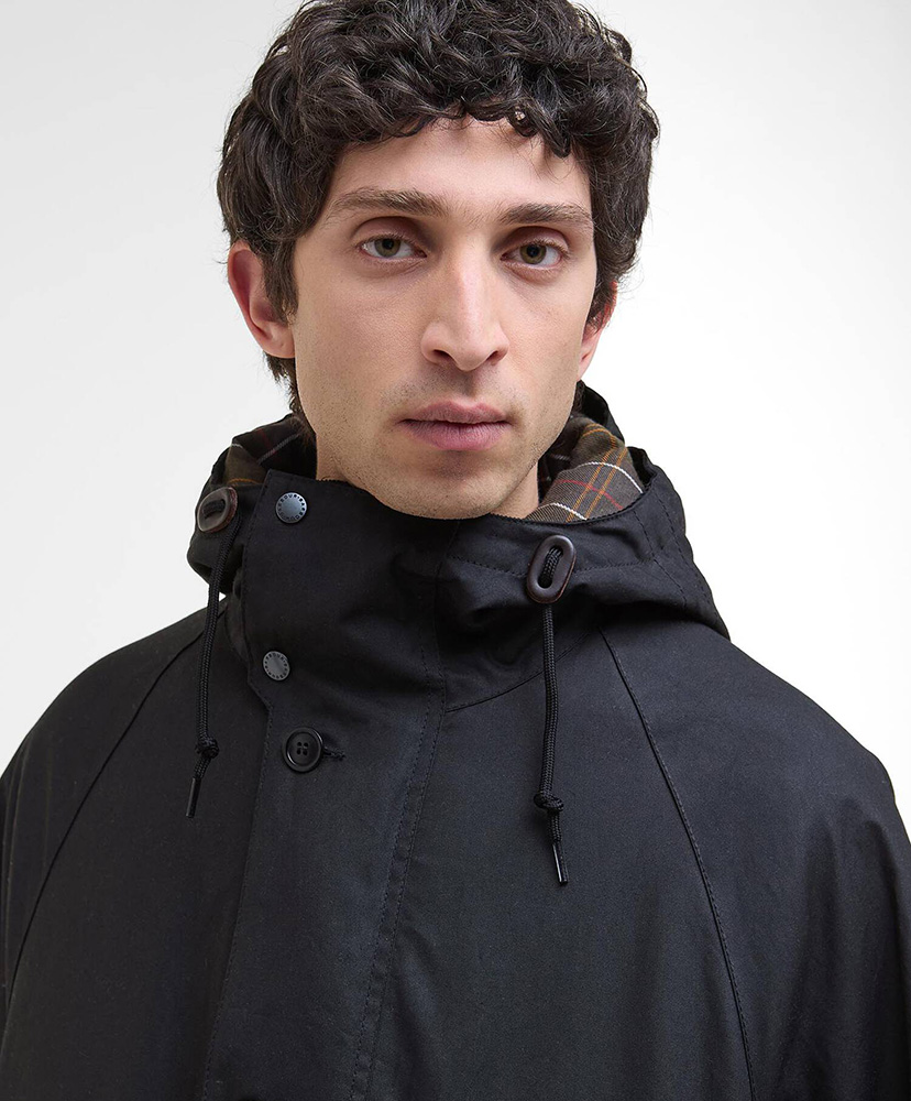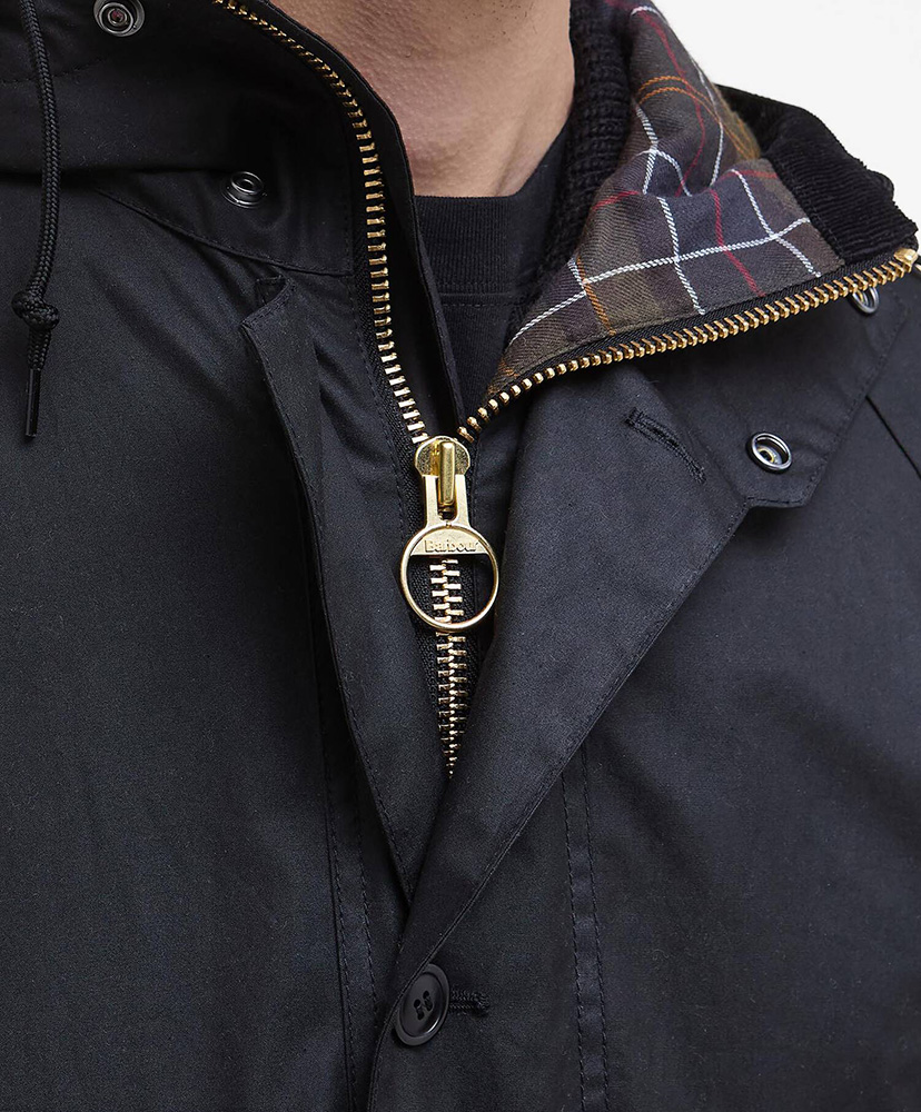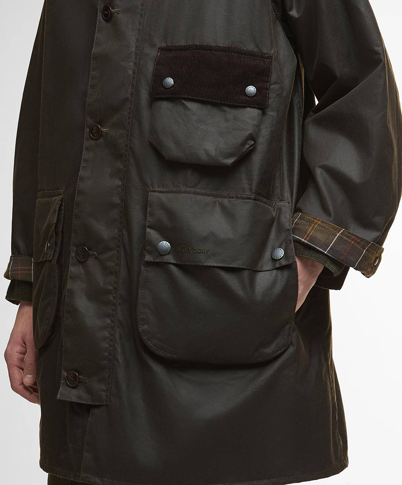耐久性と防風性に優れた6オンスのワックスドコットンを使用。長年の使用にも耐える堅牢さと、バブアーならではの味わい深いエイジングを楽しめます。クラシックなルックスに、固定式フードや胸ポケット、そして左右に備えた下部エントリーポケットなど、実用性を兼ね備えたディテールを装備。