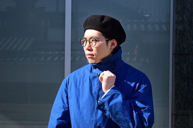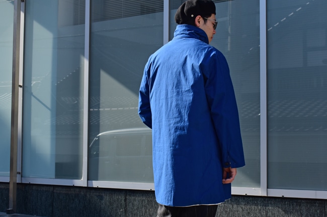 表地と裏地、2枚のコットン素材を袋状に縫い合わせる“袋縫い”という製法で仕立てられており、ふっくらとした空気感と、ステッチが表に出ないミニマルな表情が特徴的なコート。