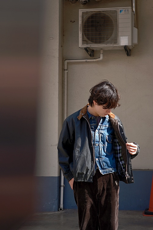 アップデートされたTransport Blousonは、ドッグイヤーカラーや襟のコーデュロイの切り替えなどイギリスらしさ、Barbourらしさを残しつつも、広く取られた身幅や袖幅からなるシルエットにどこかアメリカの匂いもしてくる。