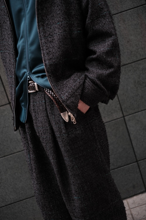 春夏の展開ではありますが、季節柄プレーンな洋服が中心になりがちなシーズンだけに、こんな立体感のあるツイードこそ楽しんでいただけることと思います。