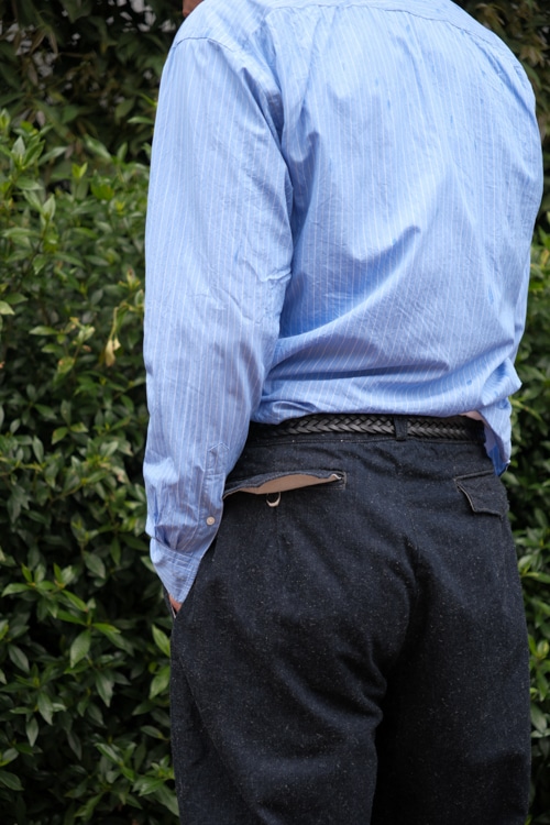 90年代にR○lph LaurenやD○ckersから出ていたデニムスラックスの「あの感じ」とは違う、ベルトループの細さなど随所に見られるヨーロッパらしさを感じていただけるかと思います。