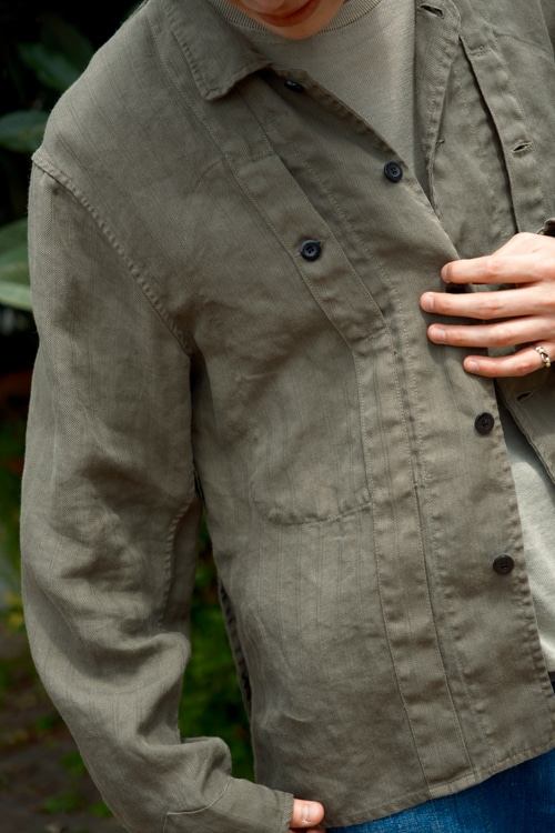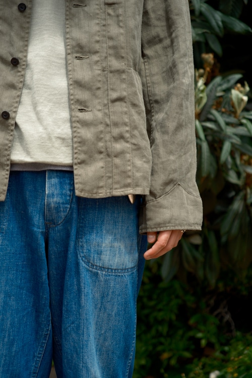 どこで見かけても一目でOutilとわかるようなネップ感のある迫力のある生地、これをビンテージだけでなく年代の浅いアーカイブにも落とし込むOutil、さすがですね。