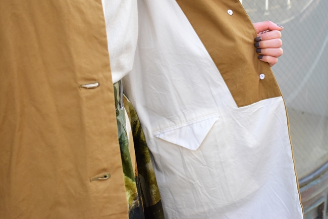 サクラコートを考案し始めた2009年当時は、春物のコートといえば防水素材で作られたワークウェアが主流だったそうです。ワークウェアに代わる春服が作れないかと考えたのが、ステッチが表に出ないように”袋縫い”をし、ふっくらと仕上がるようなつくりかた。