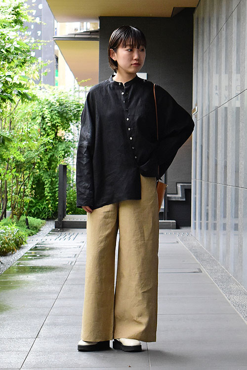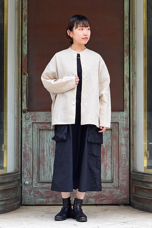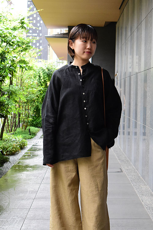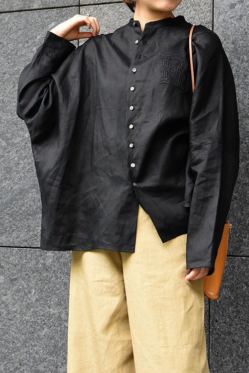 ドルマンスリーブのゆったりしたシルエットがかわいいR&D.M.Co-のスタンドカラーシャツ。