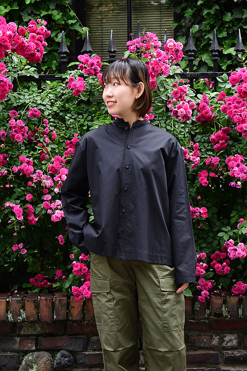 後ろ見頃の大きいプリーツが特徴的なシャツ。