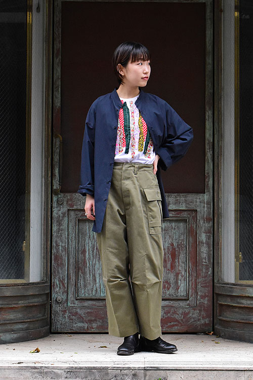 デニムや軍パンと合わせて、かっこいいアイテムと甘いフリルのミックスをさせるのが個人的なお勧めです。