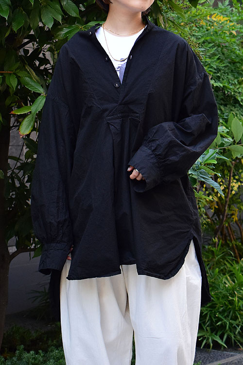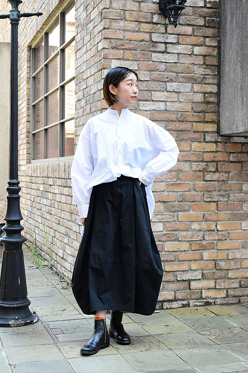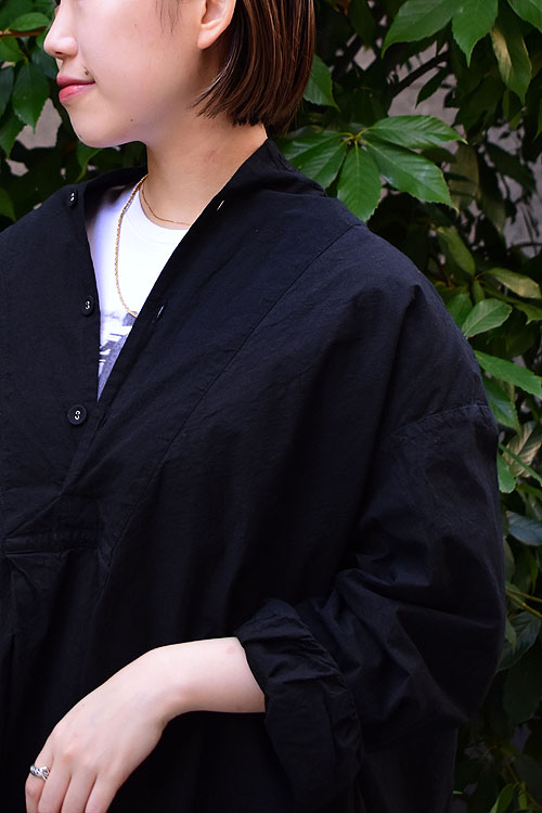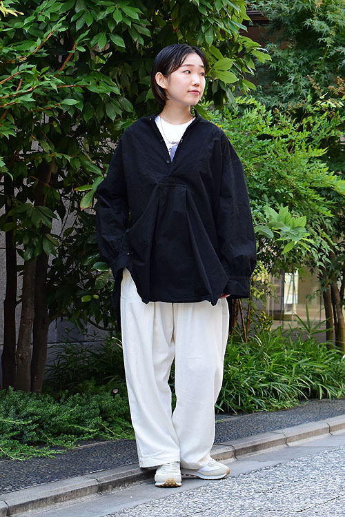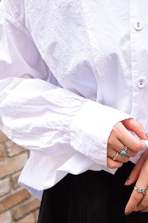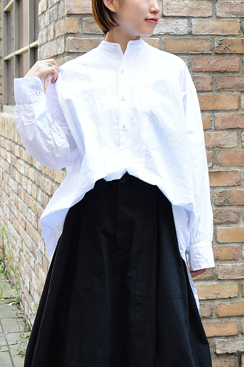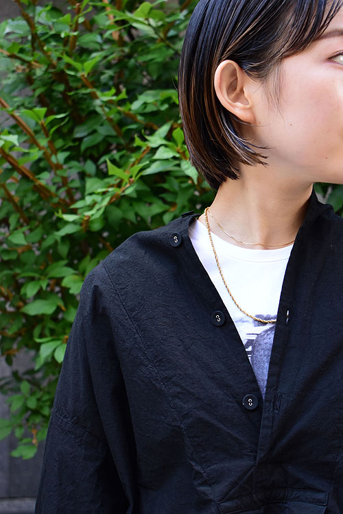 フロントヨークにのみ質感の異なる薄手のガーゼ生地を用い柔らかな印象をプラスしています。