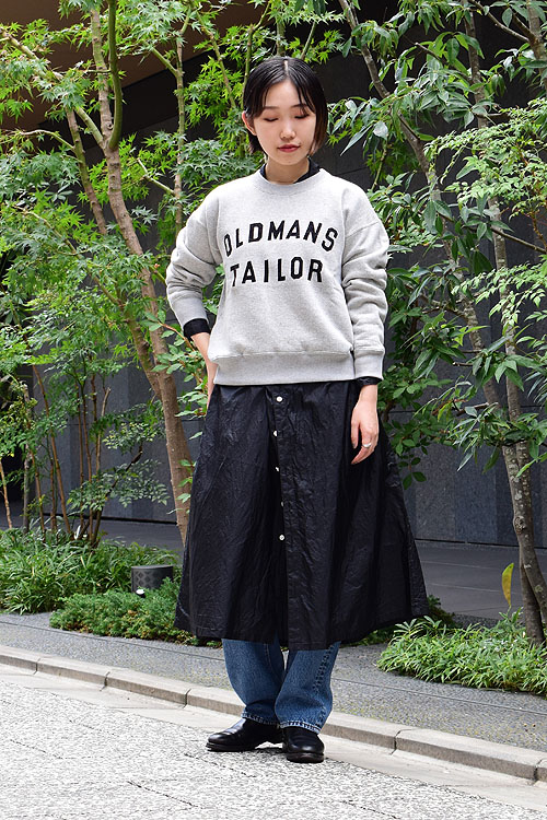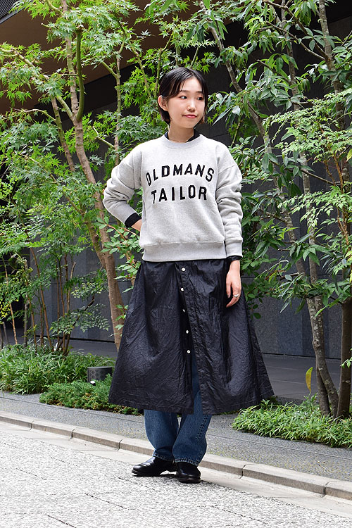 OLDMANS TAILORの大きなロゴが、シンプルながらもスタイリングのポイントになるようなデザインです。