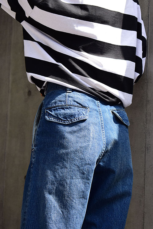 ジッパーフライ仕様で、後ろポケットはフラップポケットになっています。