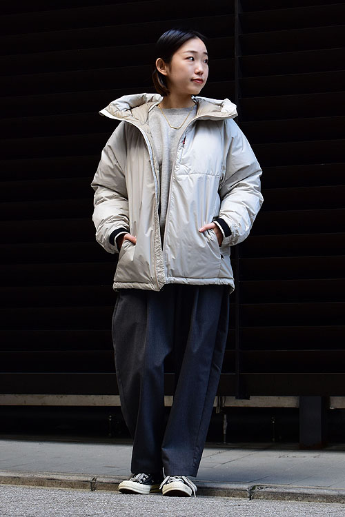 シルエットは、少しゆとりを持たせて、パーカーやニットなど厚手のインナーも着こめるようになっています。