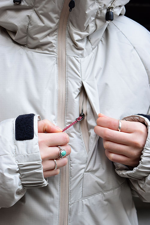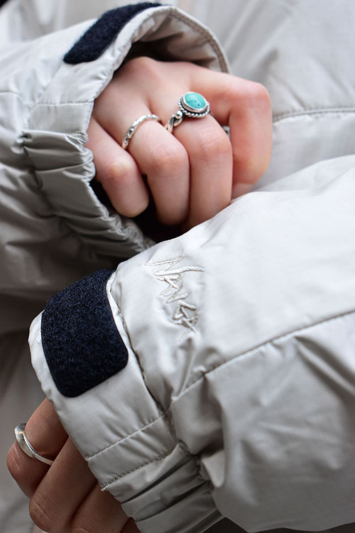 袖先のアジャスターと裾のドローコードを調節することで、さらに冷気の侵入を防ぐことができます。